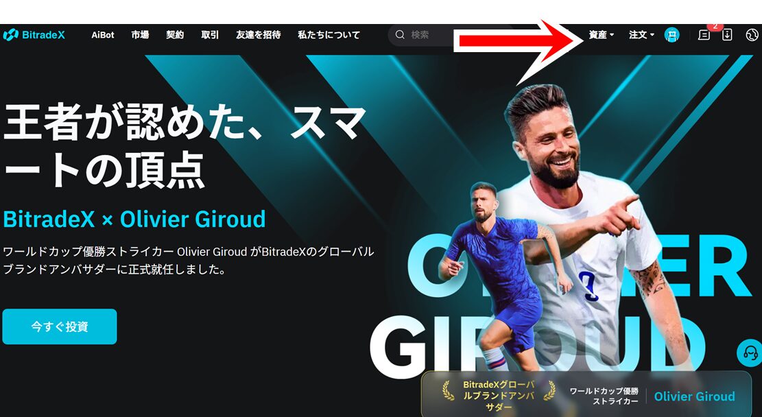 - BitradeX公式サイトまたはアプリから資産ページへアクセスする